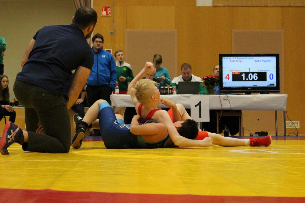 Ante Pulju paini 7-13v. 47kg:n sarjassa ja ensimmäinen vastustaja oli Rovaniemen Sampo saarinen jolle Ante kärsi selkätappion. Tämän jälkeen lämmittelypaineissa Ante loukkasi kätensä joka jouduttiin varotoimenpiteenä kipsaamaan ja seuraava ottelu Raision Elmo Kuorilehtoa vastaan oli luovutettava ja kisat olikin sitten Anten osalta siinä ja katse on jo tulevaan kauteen.