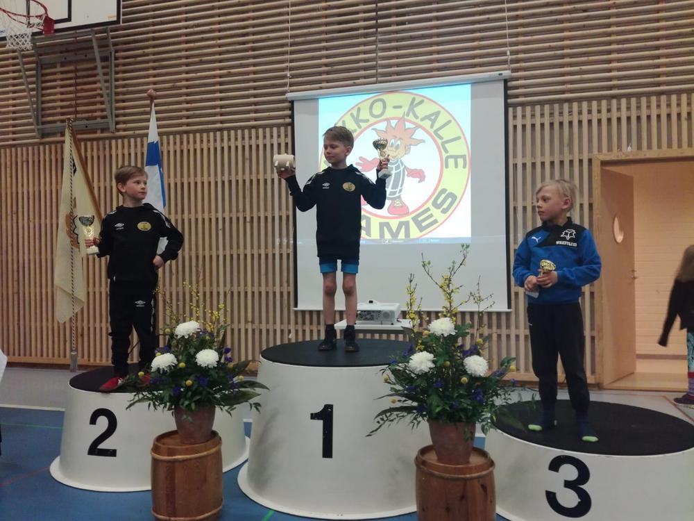 Riku Luiro joutui urakoimaan pronssinsa eteen neljä matsia joista voitti kaksi. Toisen kierroksen ottelu Kajaanin Eelis Vanhalaa vastaan oli todellinen jännitysnäytelmä Rikun ollessa alussa alakynnessä mutta nousi sisukkaasti pisteisiin 6-5 selättäen vielä lopuksi vastustajansa. Toisen pronssin paini Ante Pulju 13v. 47kg:n sarjassa kahdella otteluvoitolla ja kahdella tappiolla. Loput Veikot sijoittuivat seuraavasti, neljänsiä olivat Kasperi Miettinen, Lenni ja Miro Jaakola. Viidensiä olivat Asla Autio ja Veikko Rundgren. Elmeri Hirvonen sijoittui sarjassaan seitsämänneksi.